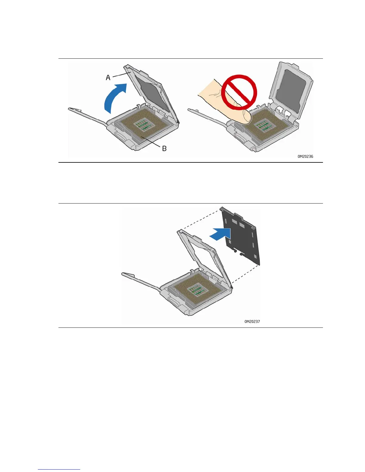 3. 抬起压板(图 8 中的 A)。切勿触碰插槽触点(图 8 中的 B)。
