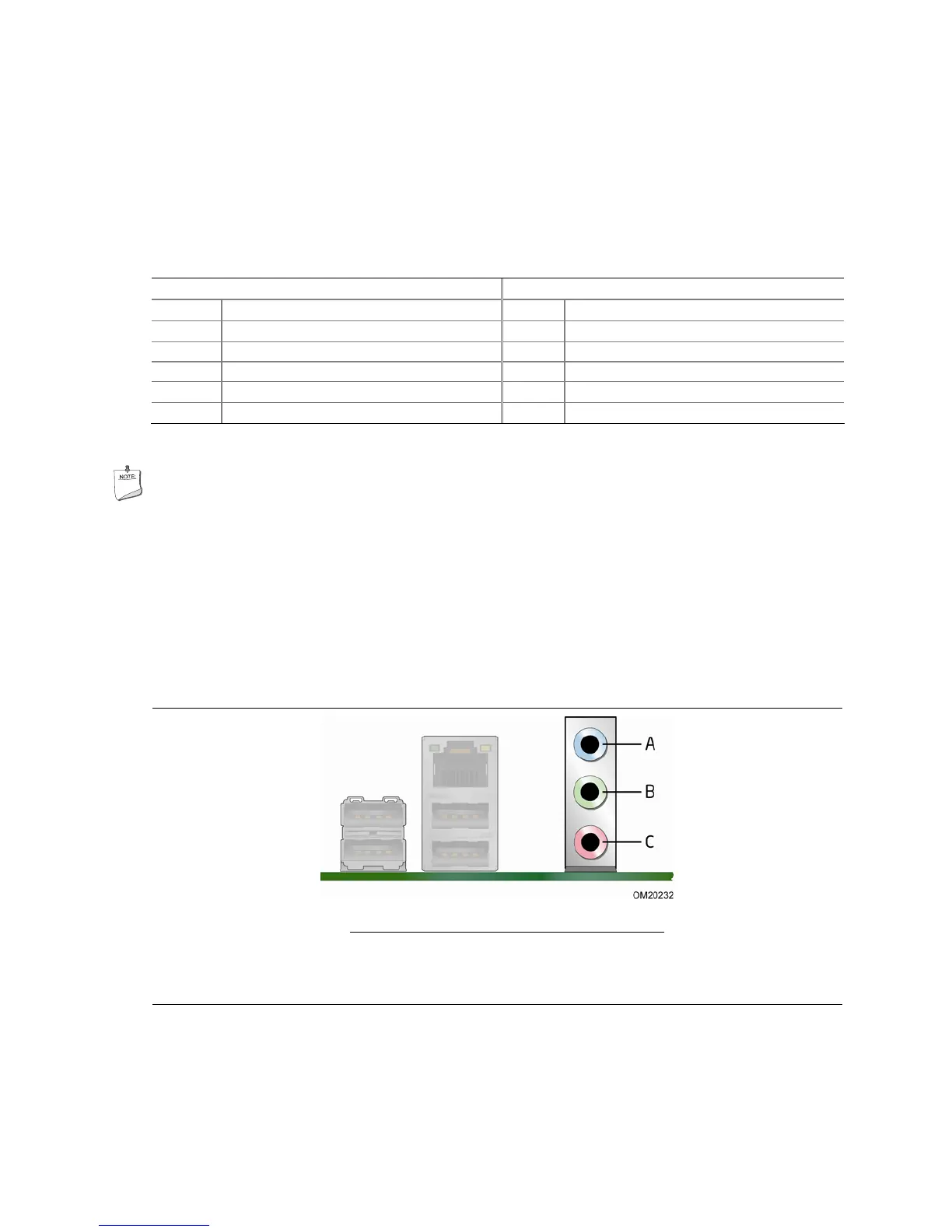 程序后,便可启用多声道音频功能。图 24 显示了背面板音频连接器。下表列出了默认的连接器