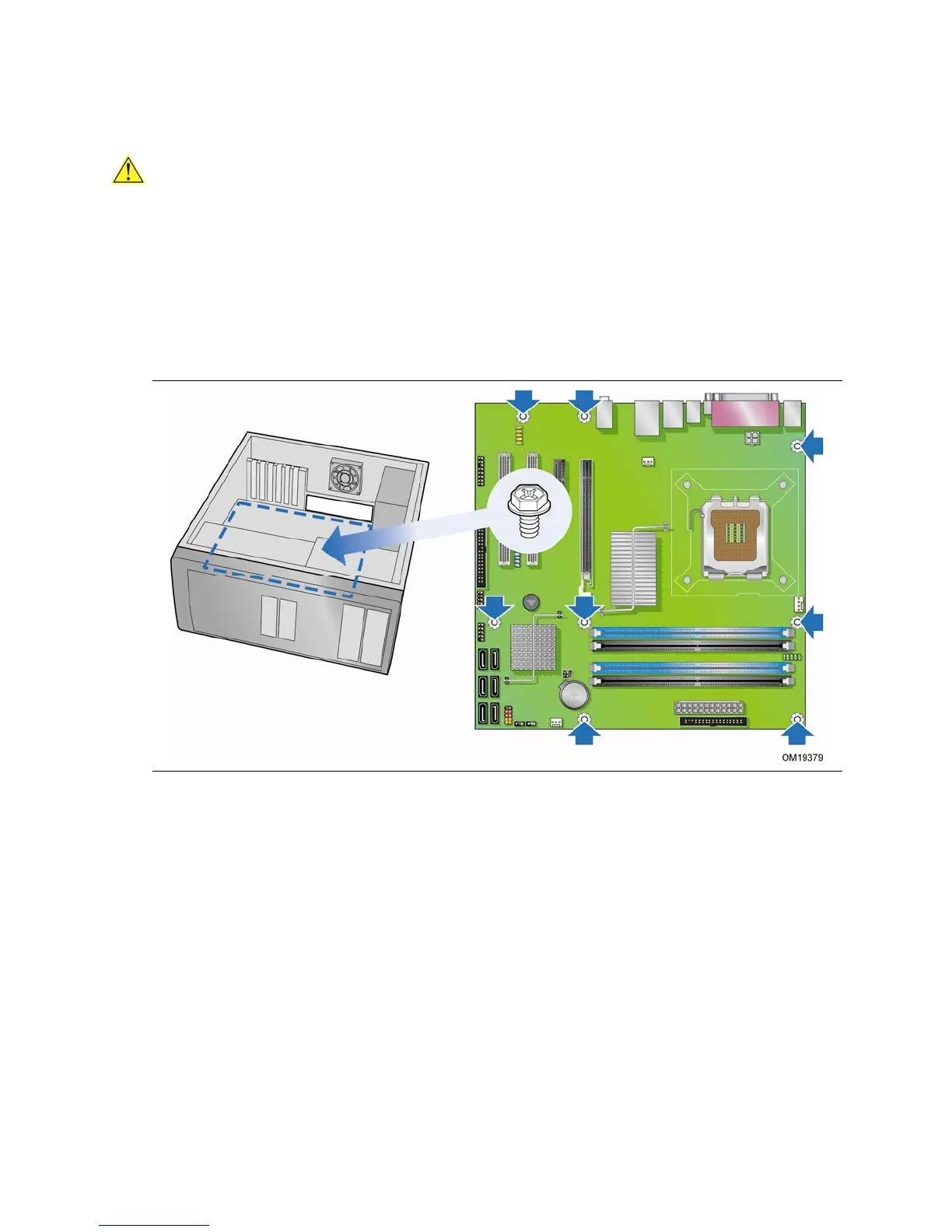 Figure 5 shows the location of the mounting screw holes for Desktop Board DQ965GF.