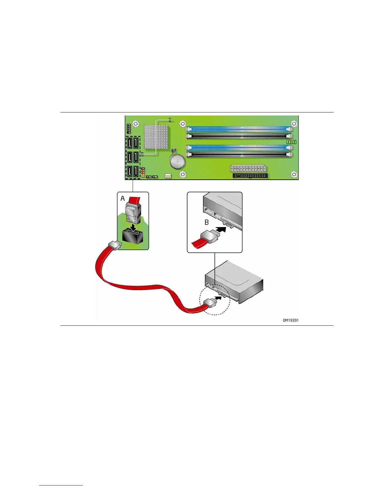The SATA cable supports the Serial ATA protocol and connects a single drive to the