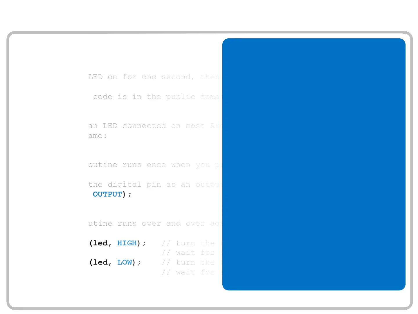 Turns on an LED on for one second, then off for one second, repeatedly.