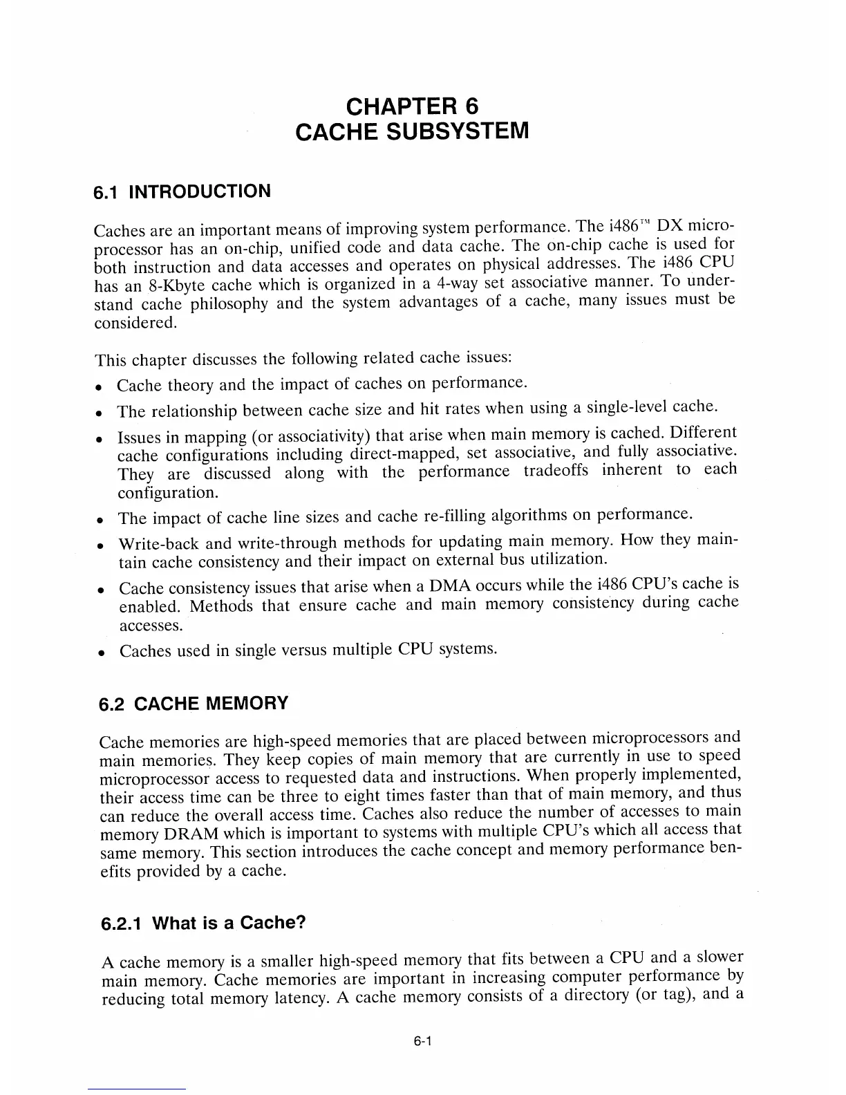 Intel i486 - 6.1 Introduction; 6.2 Cache Memory