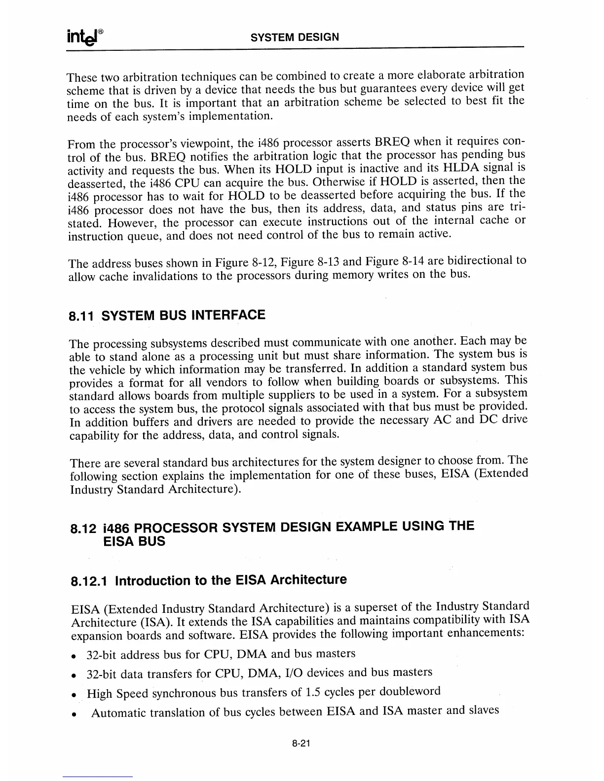 Intel i486 - 8.11 System Bus Interface; 8.12 i486 Processor System Design Example Using the EISA Bus