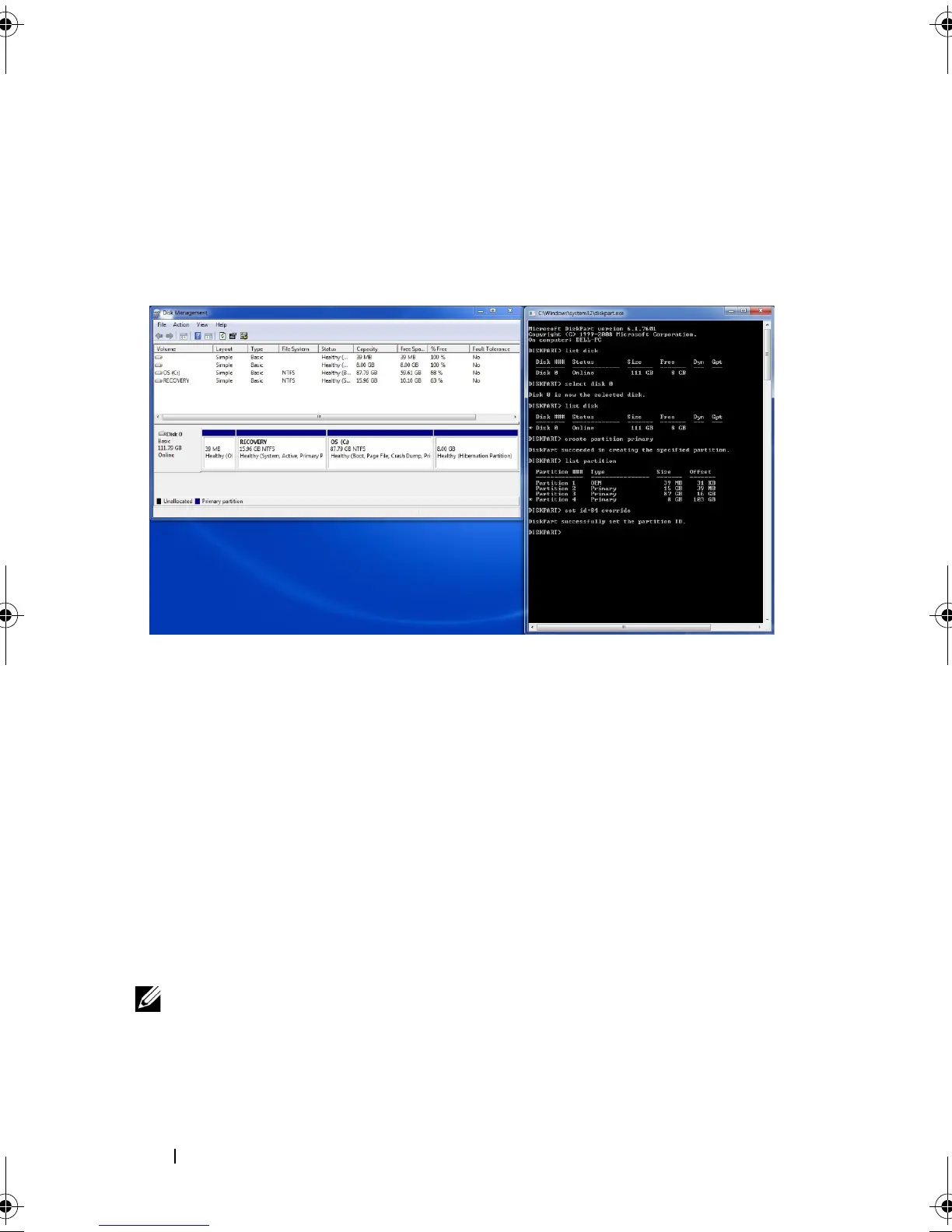 report: "DiskPart Successfully set the partition ID", as in this picture: