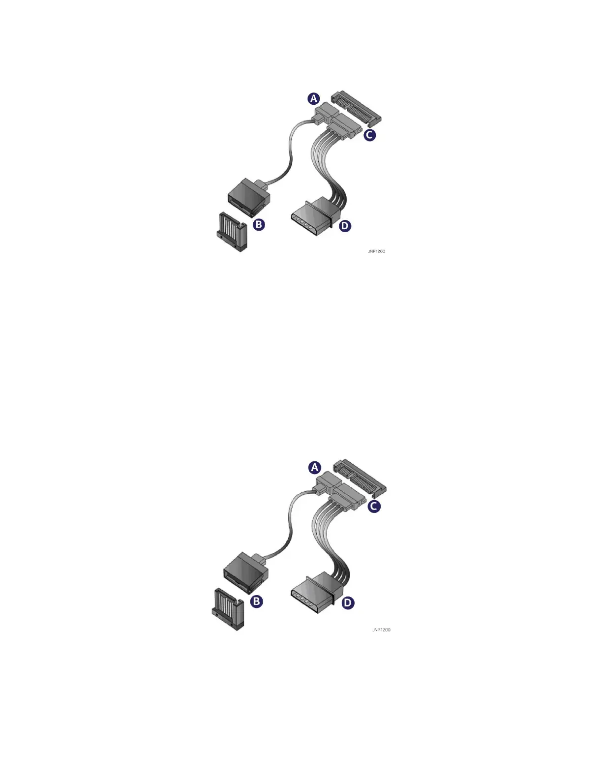 This section describes the process of attaching SATA power and data cables (not included) when connecting