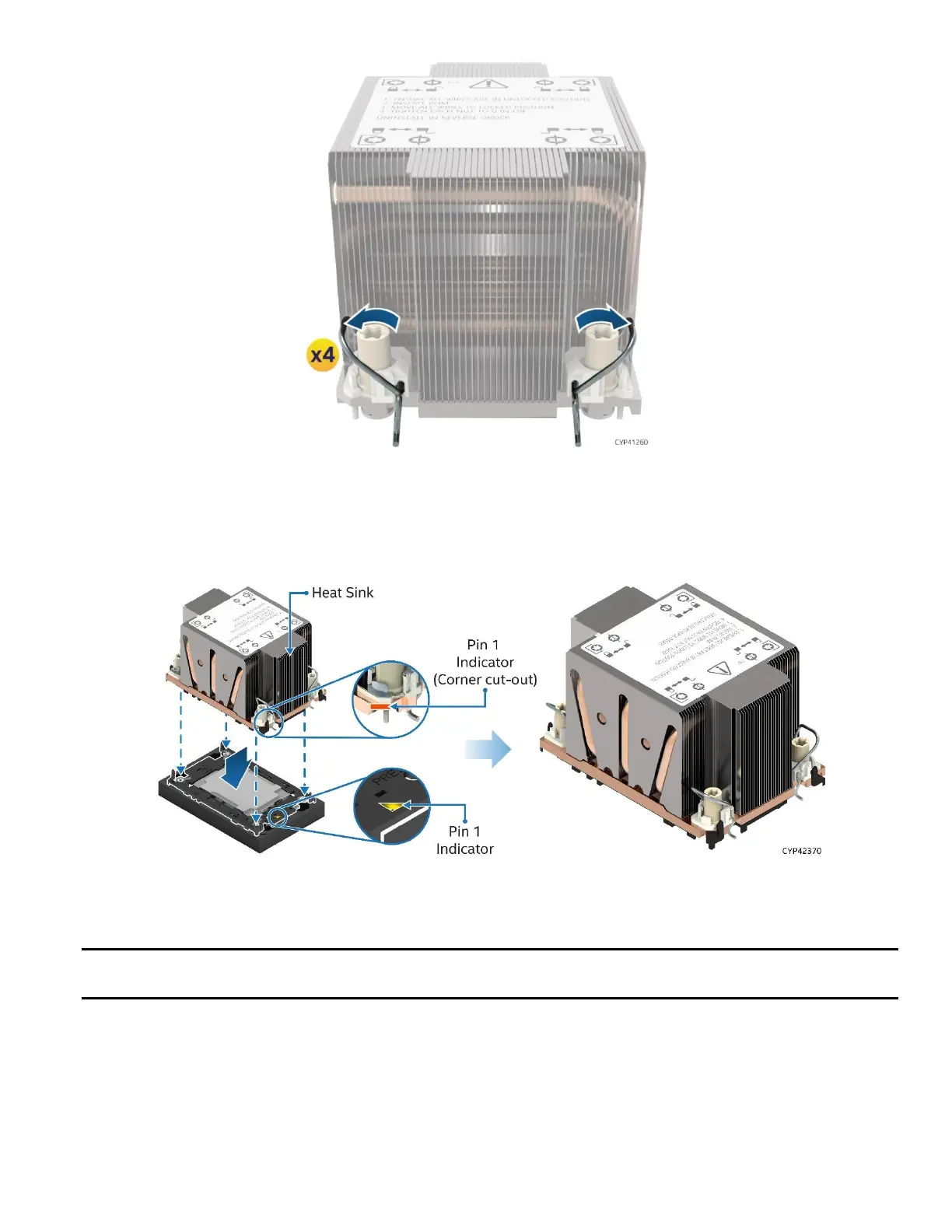 Note: For the standard 2U or 1U heat sink, there are two cut-out corners; either can be used to align Pin 1
