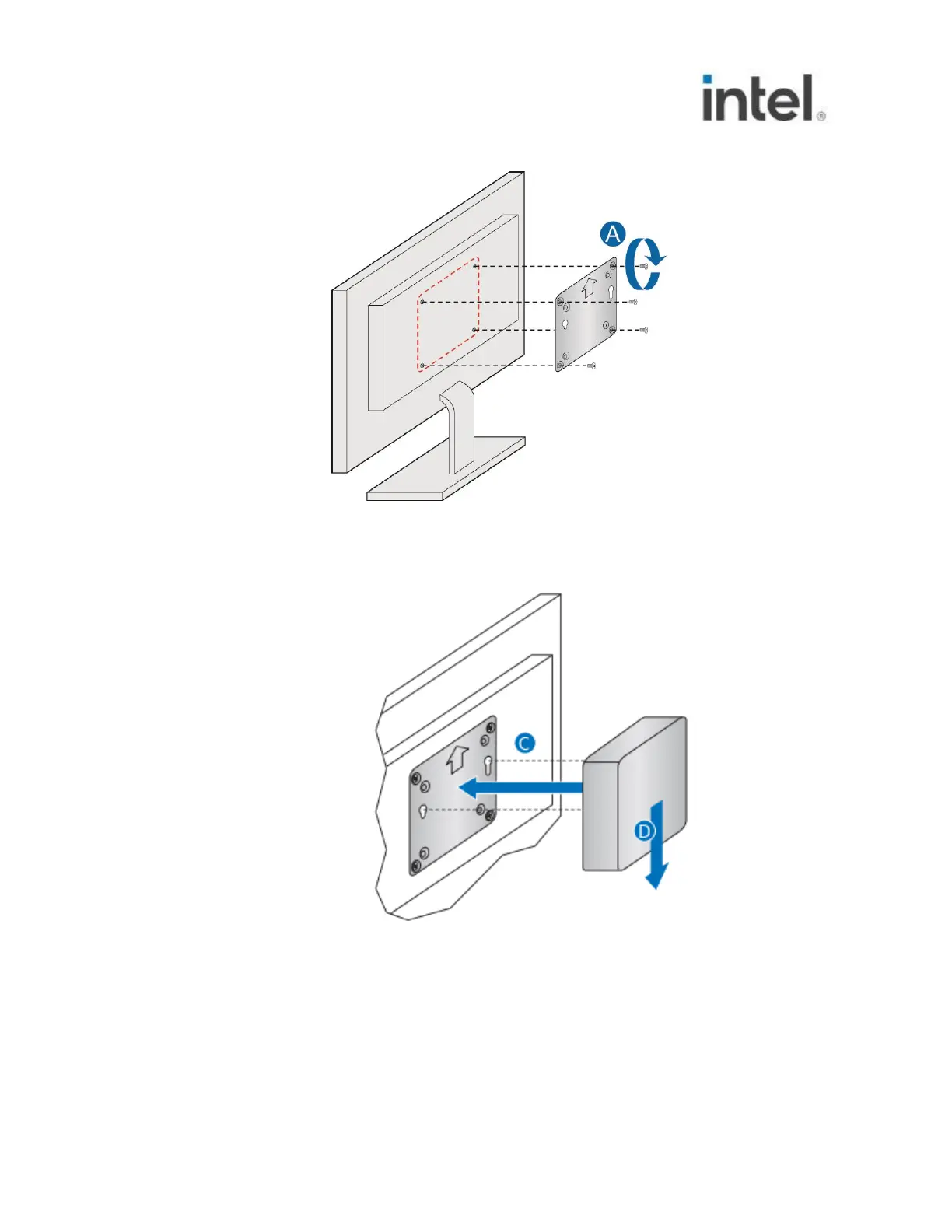 3. Slide the Intel NUC onto the VESA mount bracket.