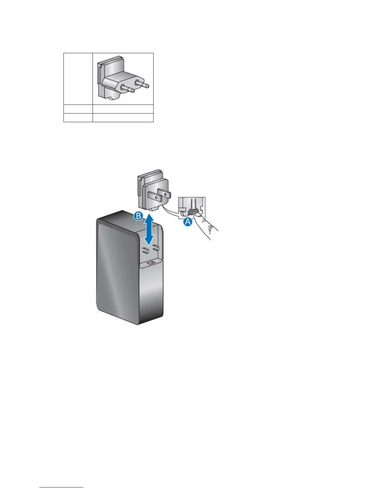 2. Slide the adapter (B) onto the power plug, locking it into place (A).