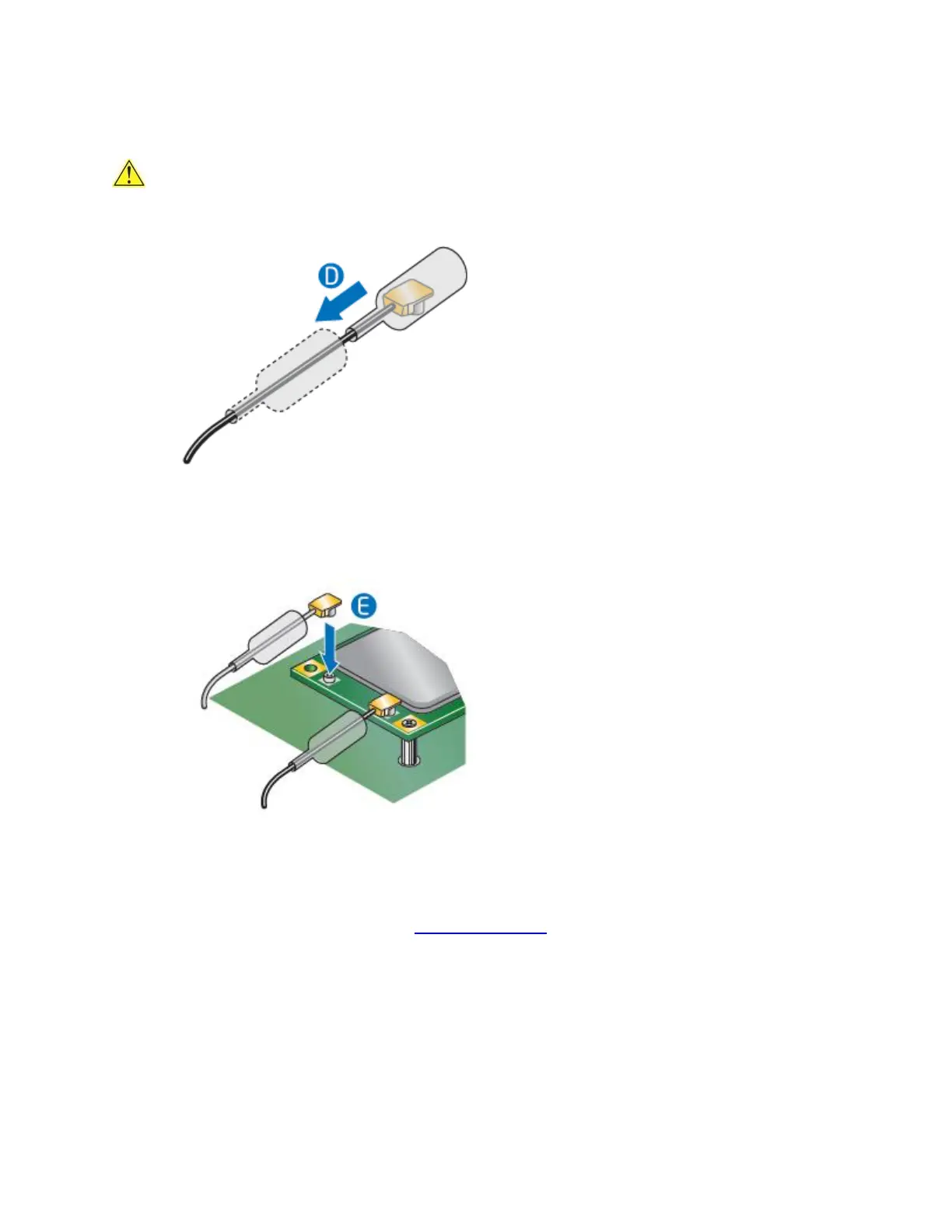 8. Attach the antenna leads to the connectors on the wireless card (E).