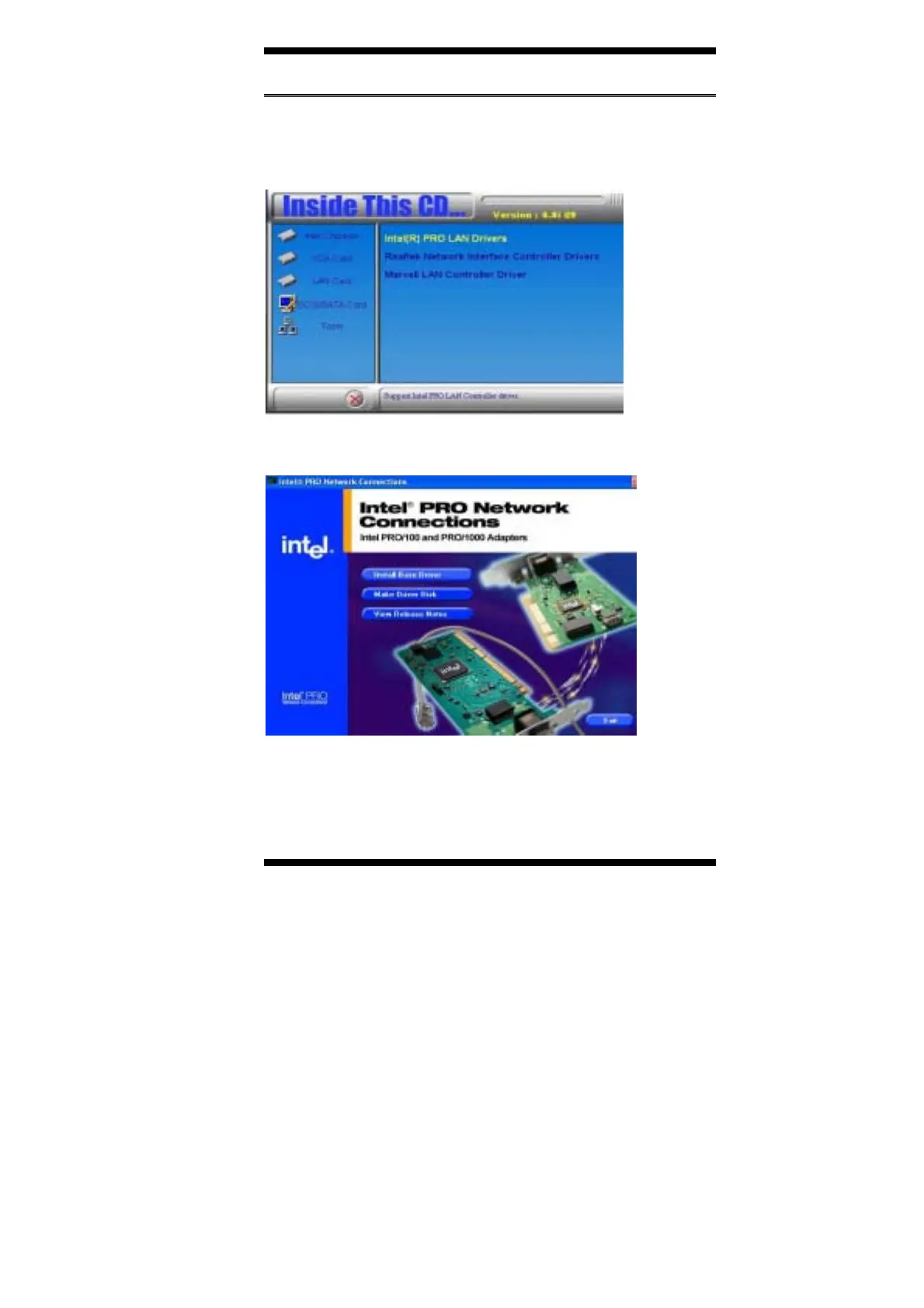 2. Click Intel(R) PRO LAN Drivers. Follow the instructions accordingly