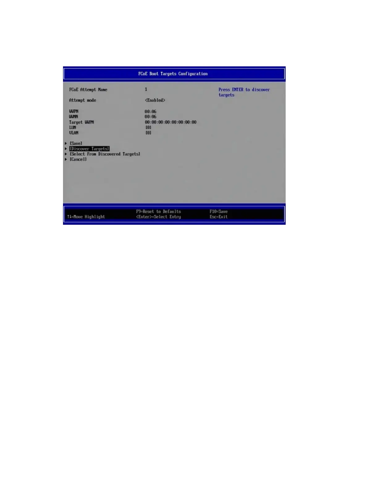 enter the fields on the FCoE Boot Targets Configuration screen). The Select from Discovered Tar-