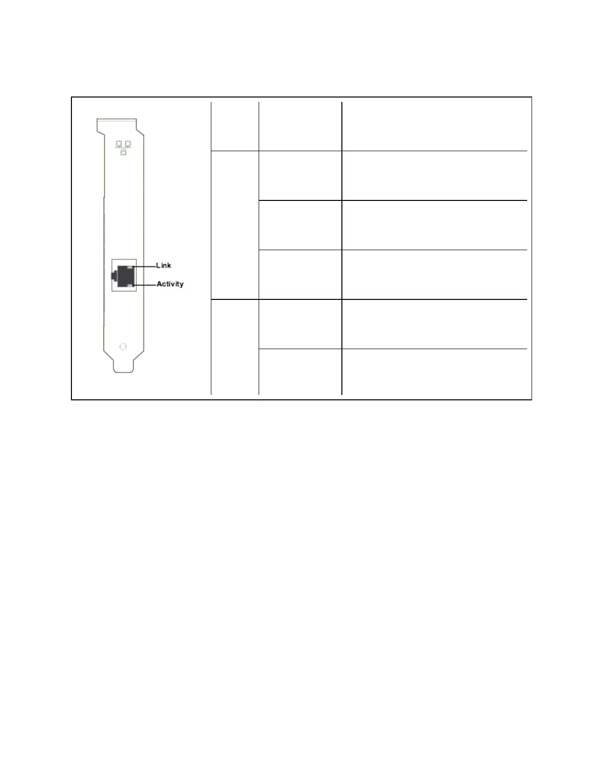 The Intel®Ethernet Converged Network Adapter X550-T1 has the following indicator lights:
