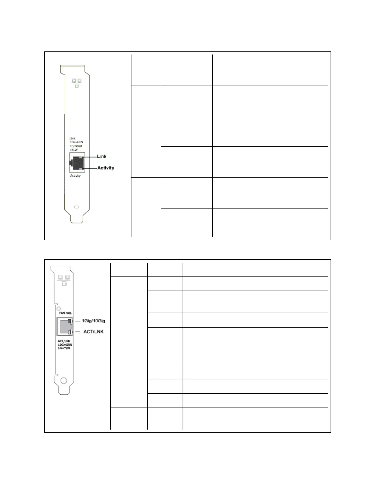 The Intel®Ethernet Converged Network Adapter X540-T1 has the following indicator lights: