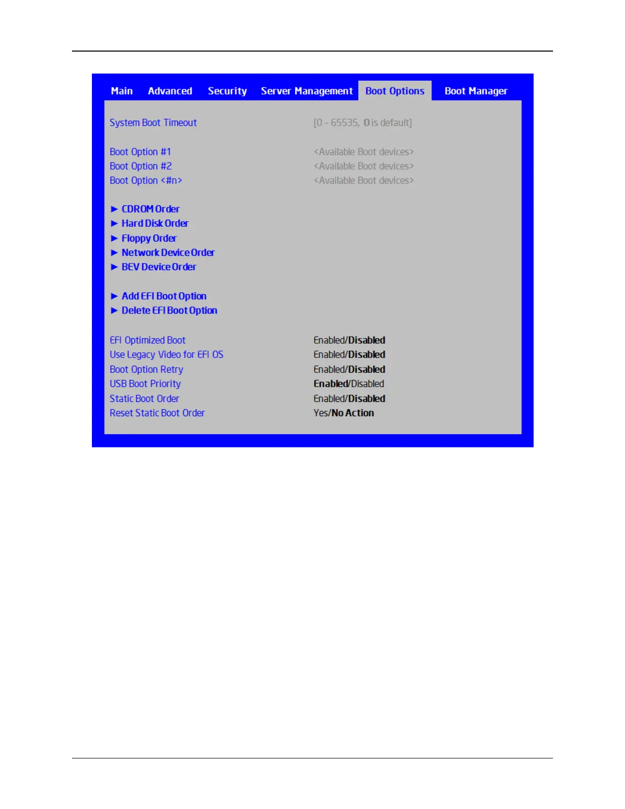 Option Values: [Entry Field 0 – 65535, 0 is default]