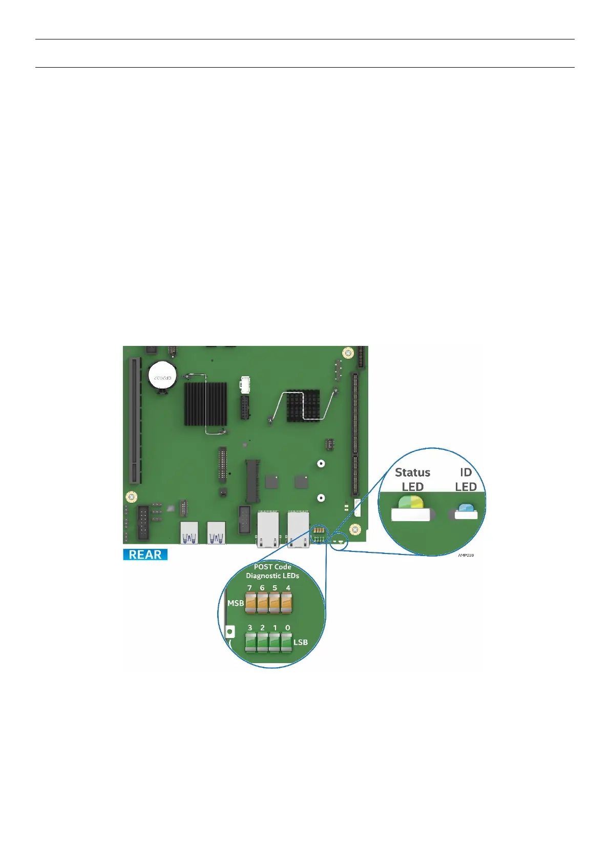 (POST) process, the server board includes a bank of eight POST Code Diagnostic LEDs on the back edge of