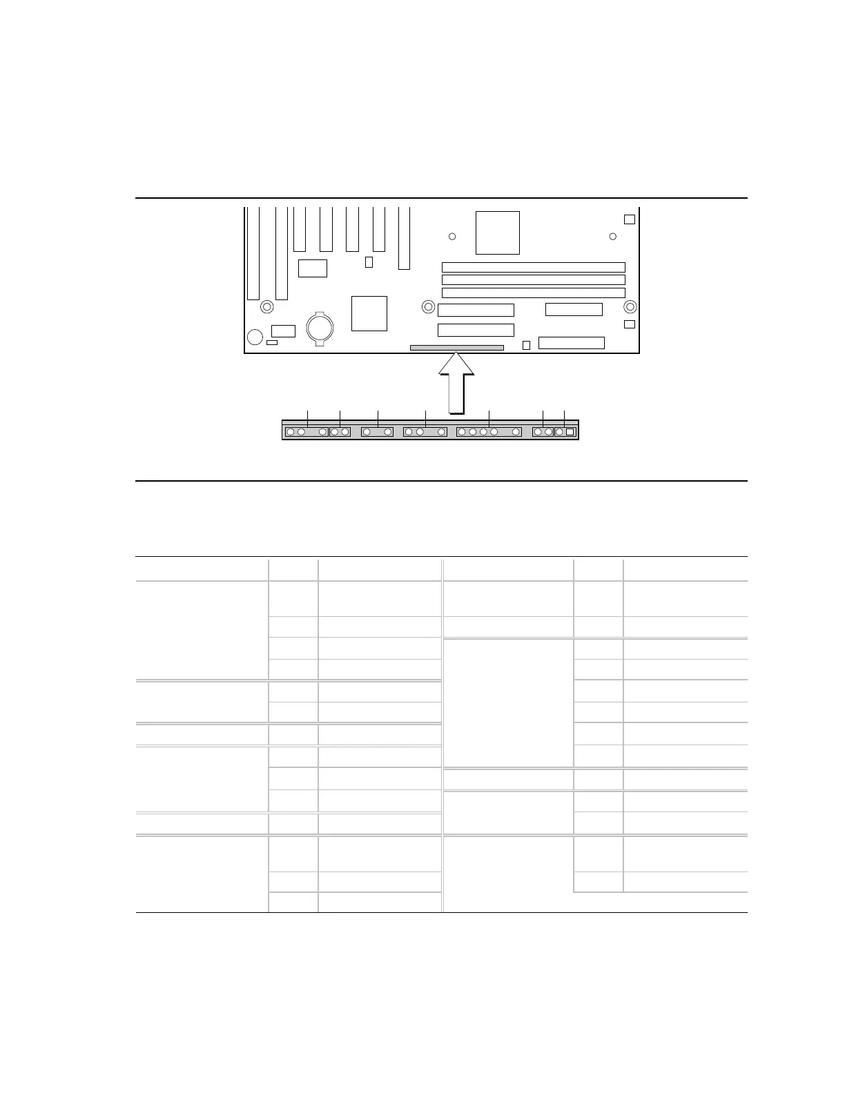 The motherboard has connectors for controls and indicators typically located on the front panel of