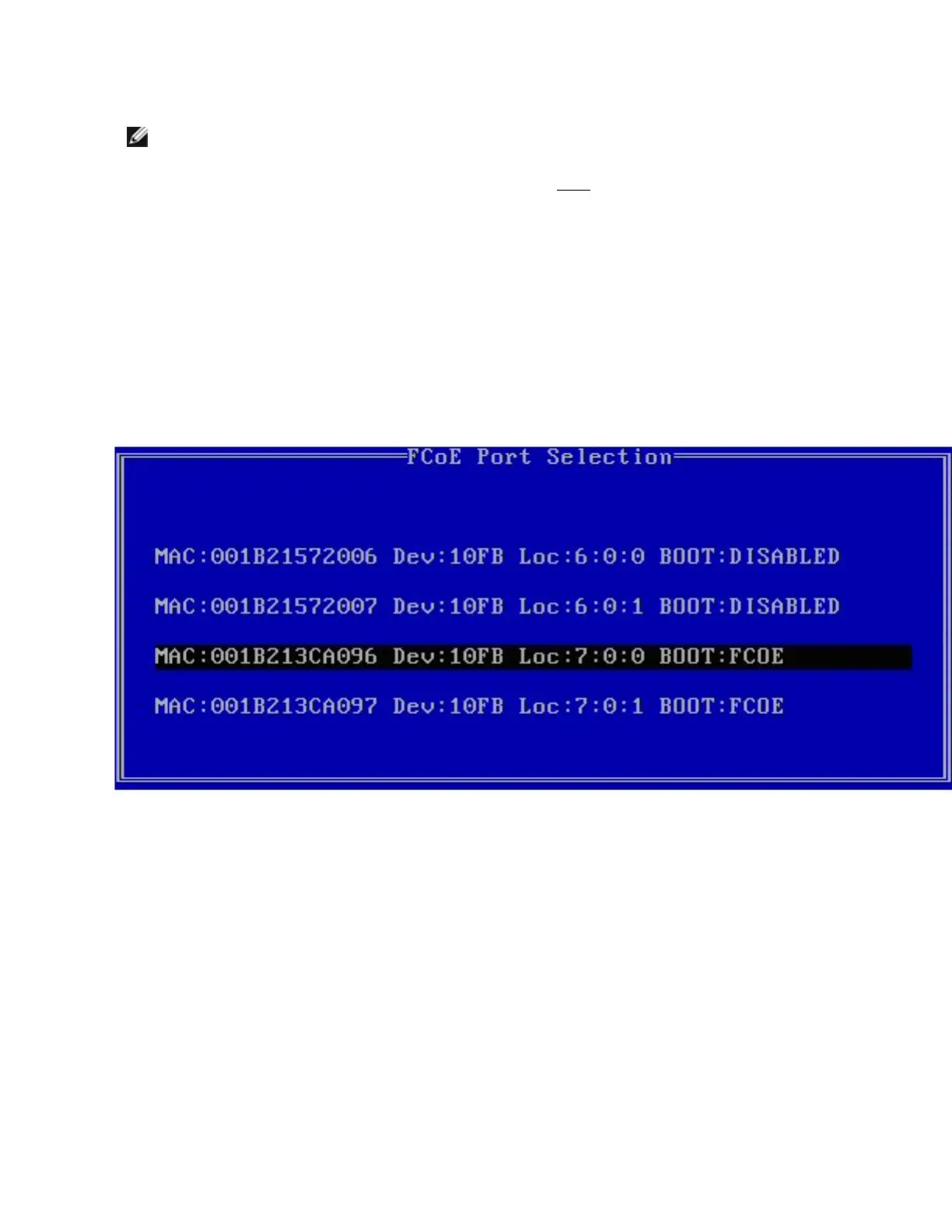 displayed within the Port Selection Menu. If there are more Intel® FCoE Boot-capable adapters, these are not