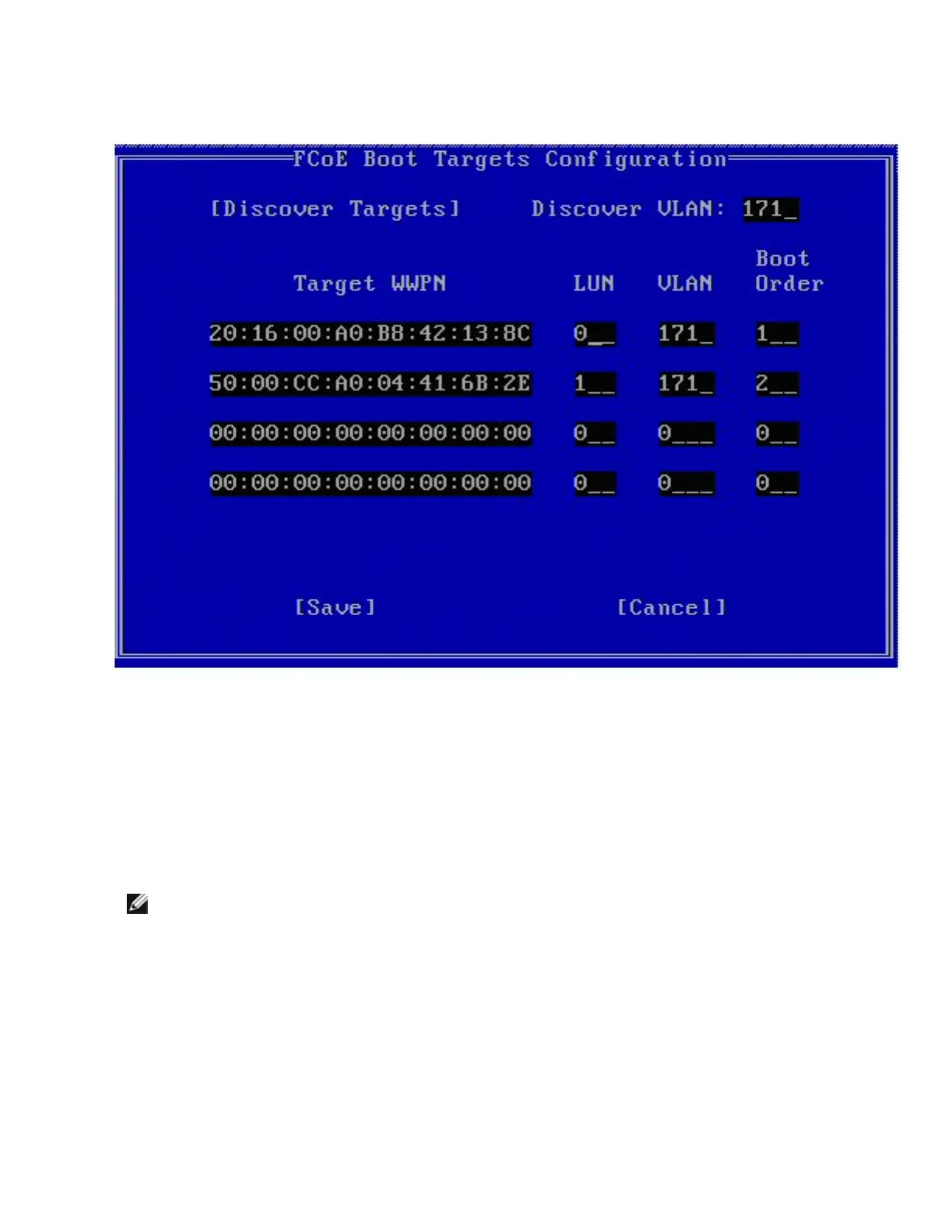 logged into the fabric until the FCoE Boot Targets Configuration Menu is exited.