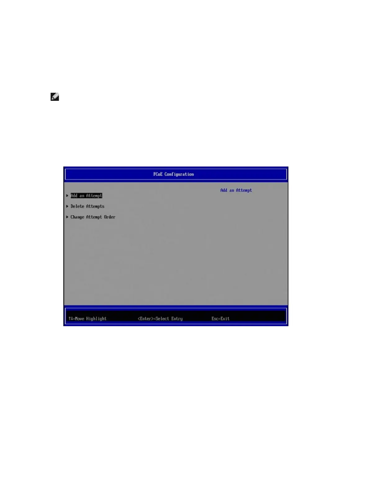 An FCoE Attempt is a configured instance of a target from which the system will attempt to boot over FCoE.