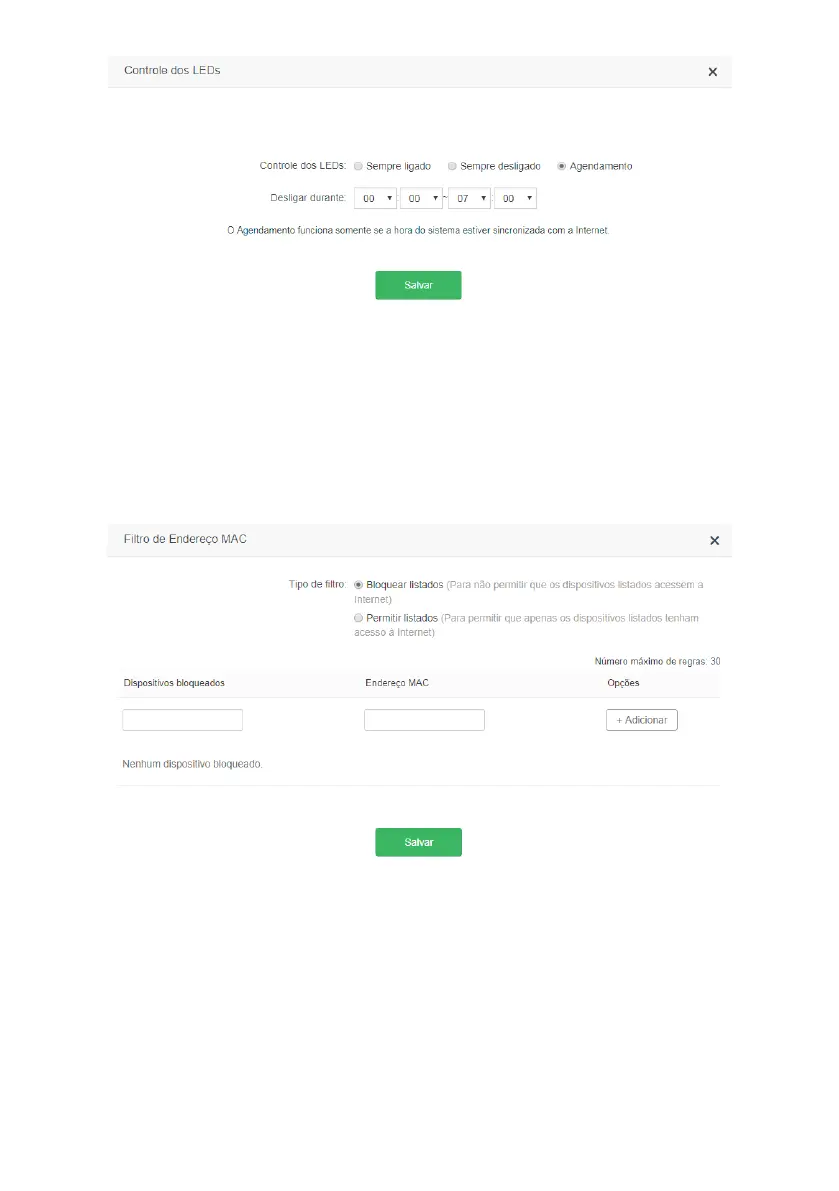 » Scheduling: in this option you can set the time that the LEDs will be off. By selecting