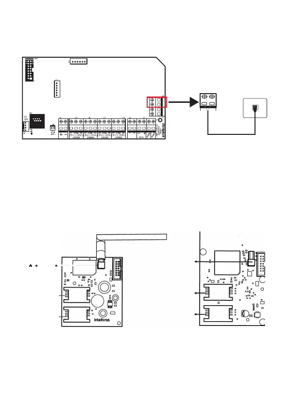 This is the telephone line’s input, connect the two wires of the public telephone line
