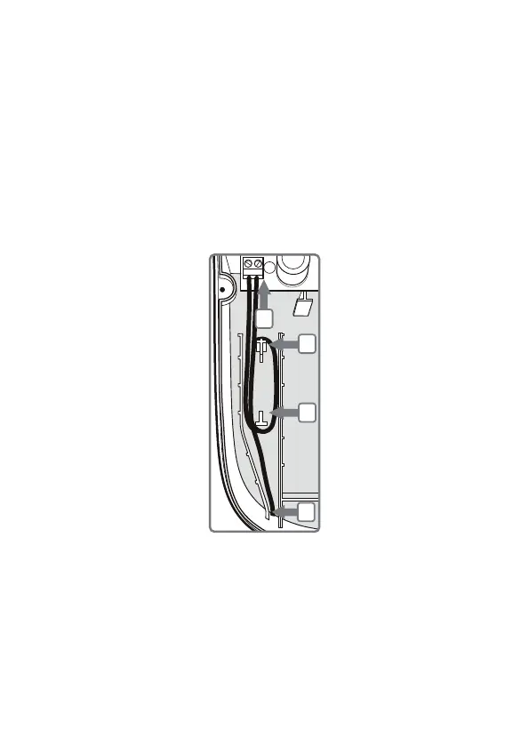 1. Leave approximately 27 cm of the power cable inside the cabinet, through point D;