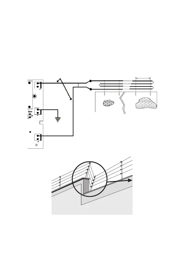 Keep a minimum distance of 15 cm between the wires and the wire to the wall.