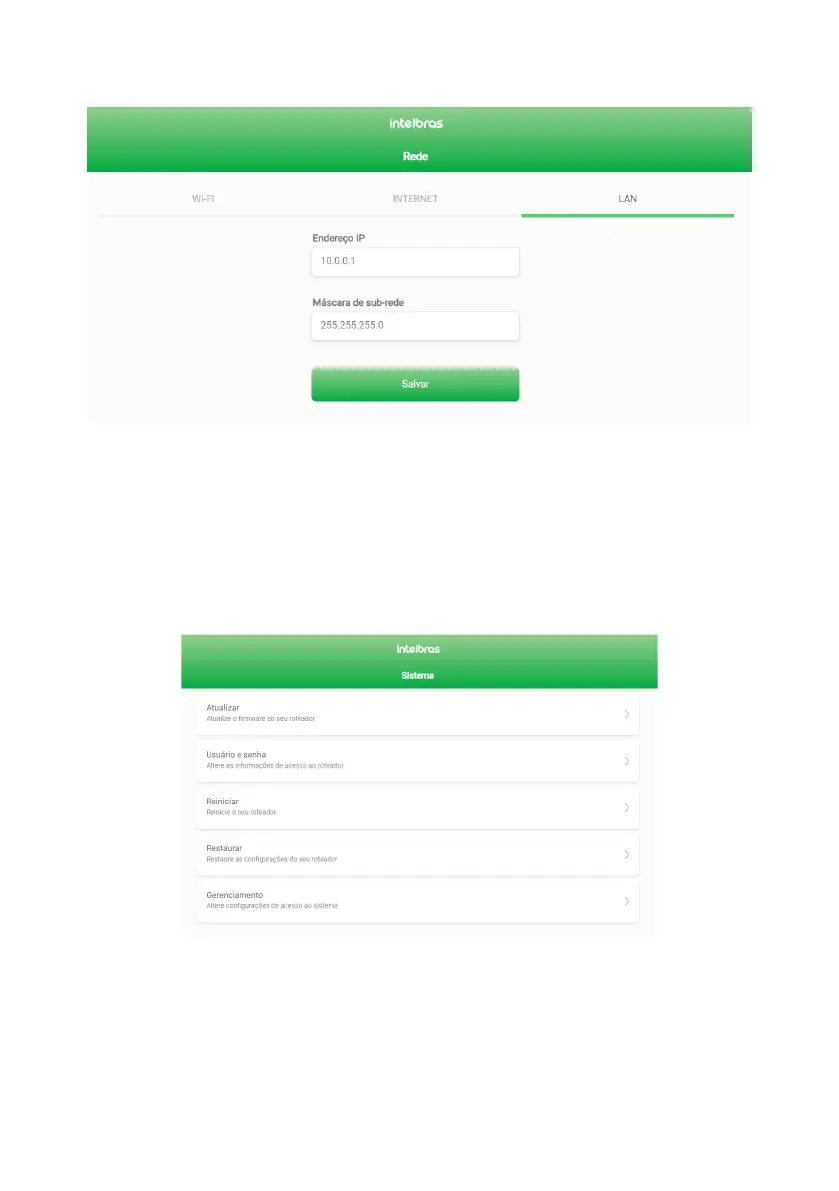 Note: The DHCP server of the LAN is enabled by default with IP range set by the congured subnet mask.