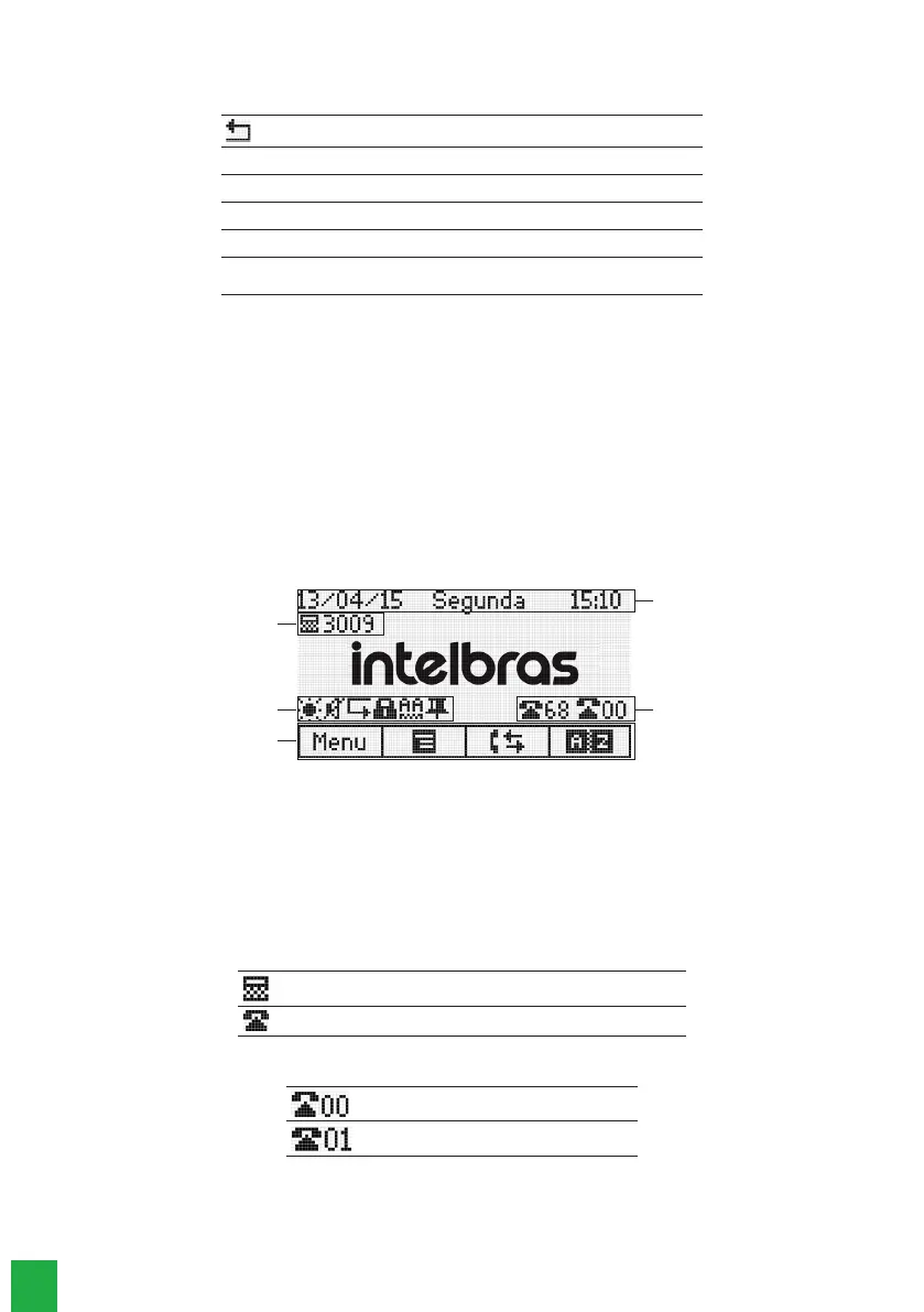 Quando o ramal estiver programado como um ramal de operadora os seguintes ícones aparecem na tela: