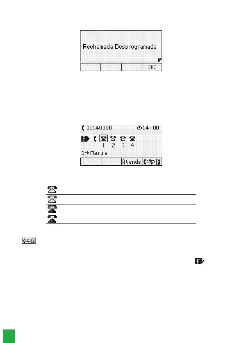 ou ·, a chamada selecionada é atendida e a chamada em curso é colocada no nal da la. Pressionando a tecla