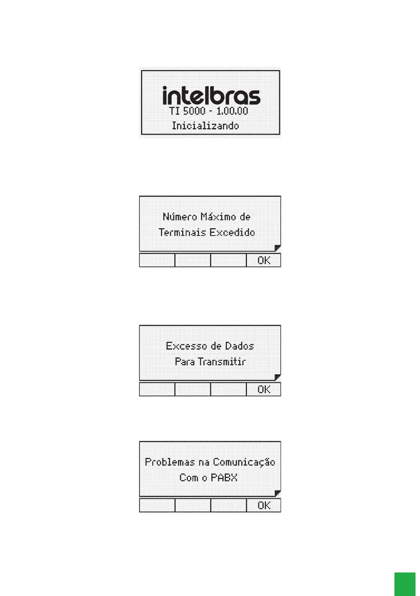 Esta mensagem aparece quando as informações enviadas do PABX para o terminal estiverem incorretas. Presença de