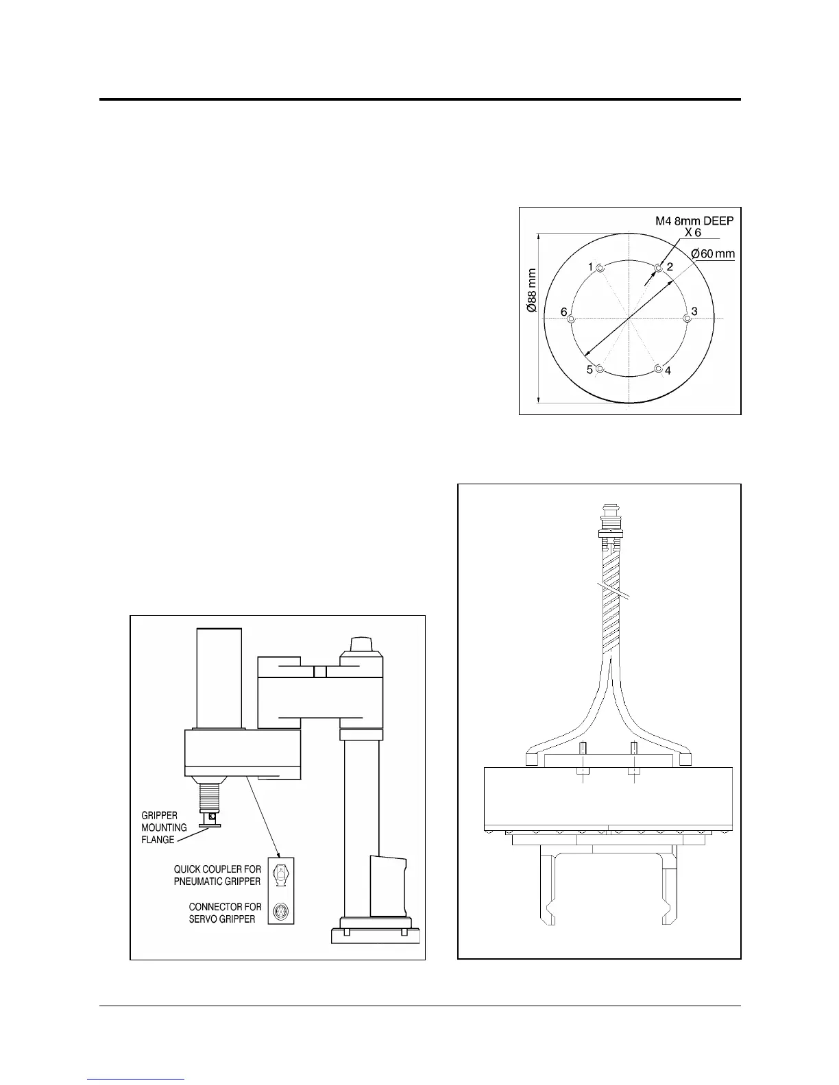 The gripper is attached to the flange at the end of the robot arm whose layout is