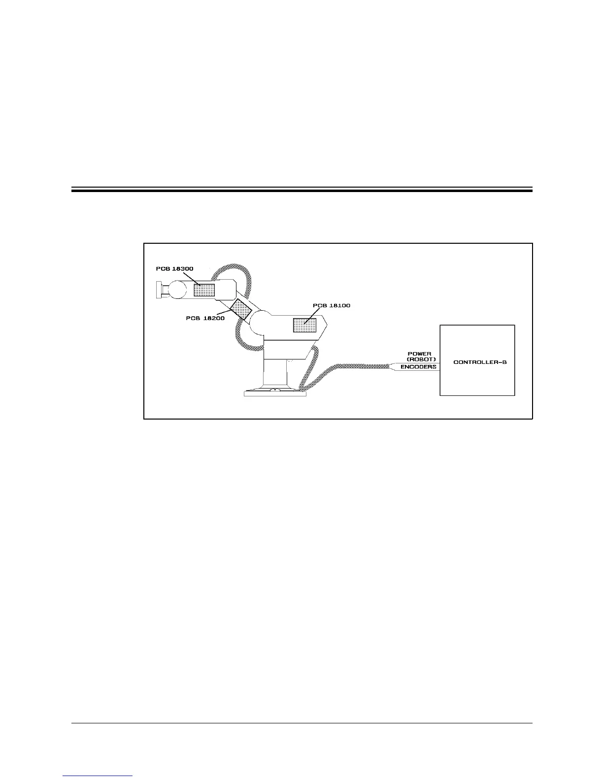 The robot and encoder cable are directly connected to PCB 18100. The robot