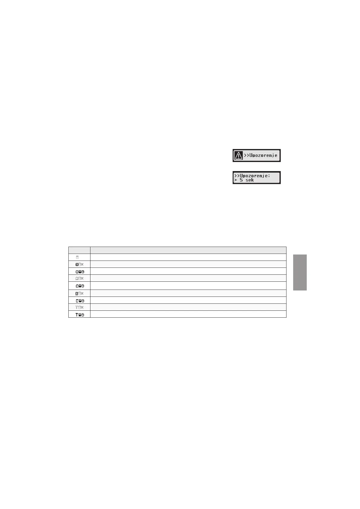 þenja brzine, ovo upozorenje üe ostati na ekranu u dužini koja je podešena, a pre nego što se pre-