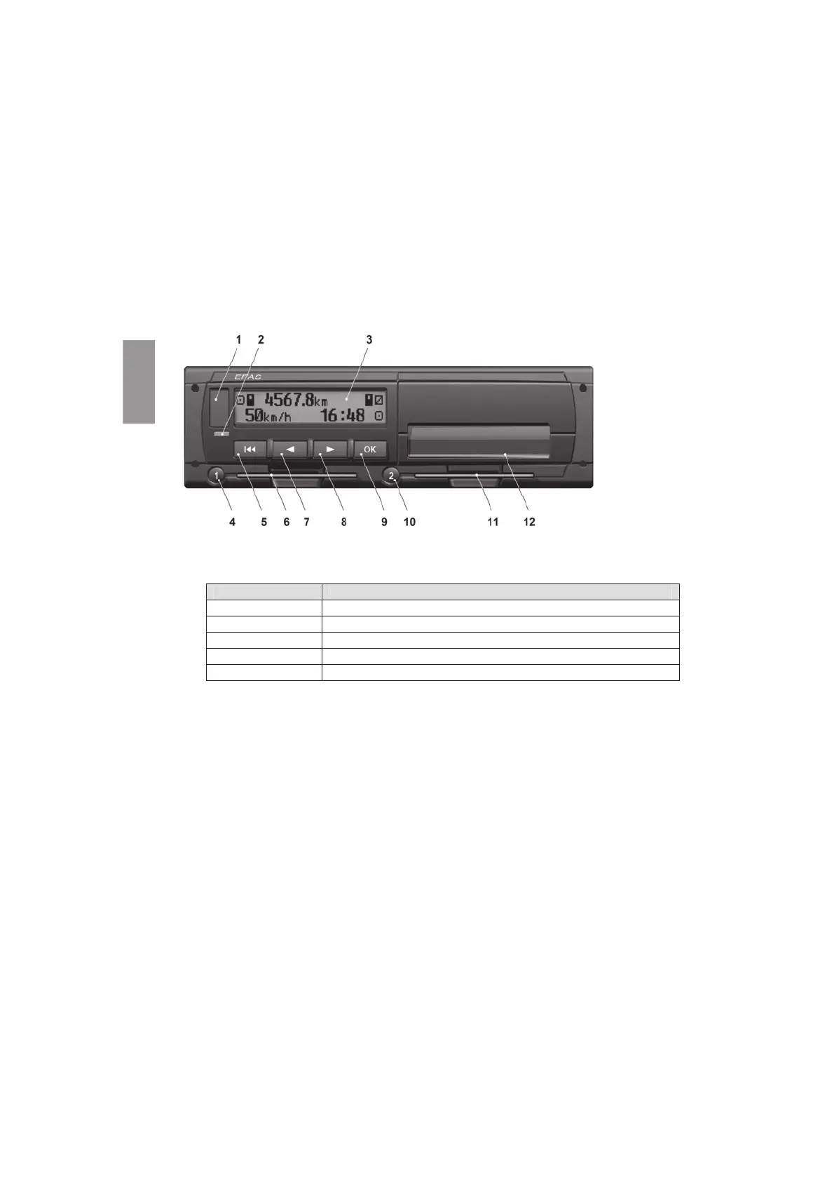 Skaitmeninio tachografo ekrano parodymai ir valdymas: