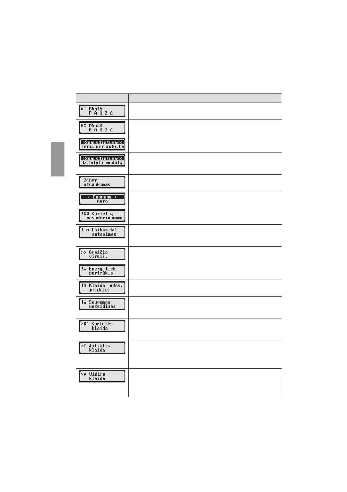 iš kontroliniǐ mygtuku informacijai parodyti ir užfiksuokite. Jei gedimas