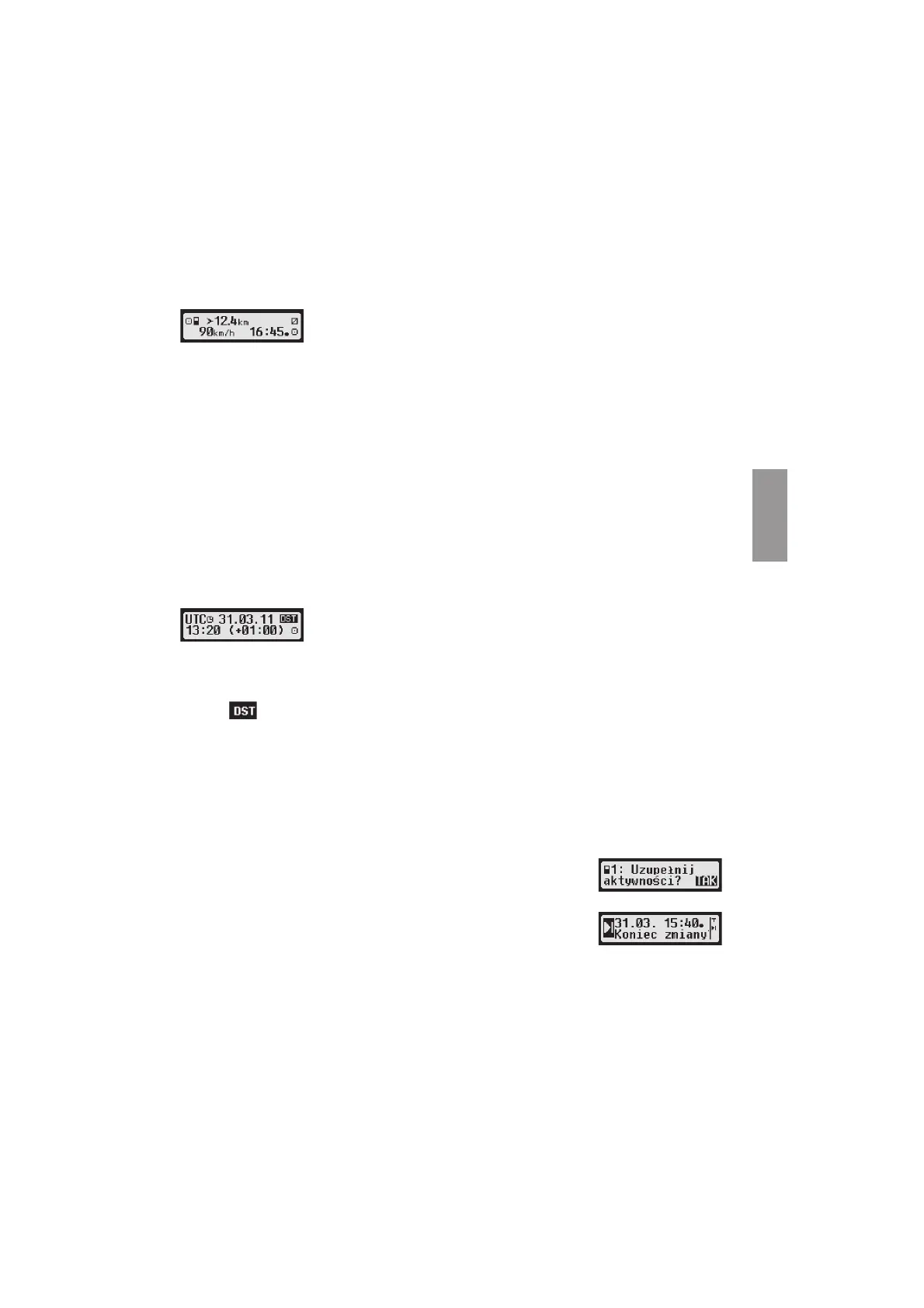 ŀ Pole wskazuje, Īe tachograf cyfrowy zostaá ustawiony na czas letni. Brak symbolu DST