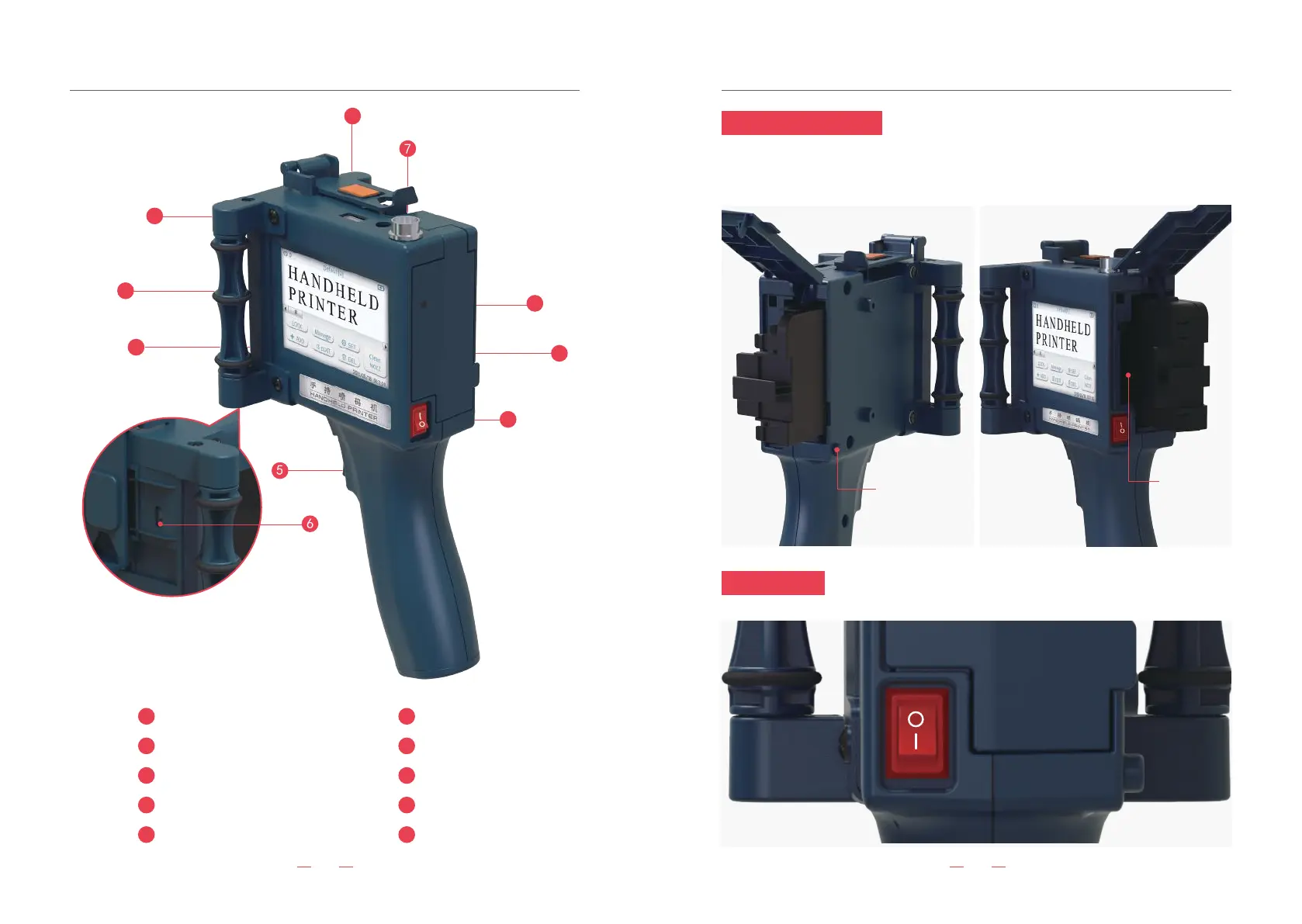 Please turn off the handheld printer while installing the ink cartridge. Press the side switch