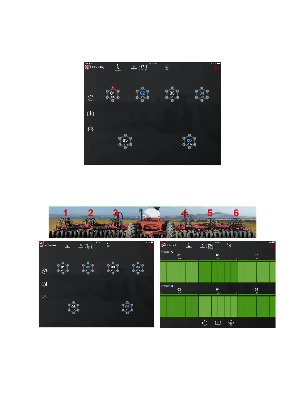 Right: Blockage screen representing that implement in row view.