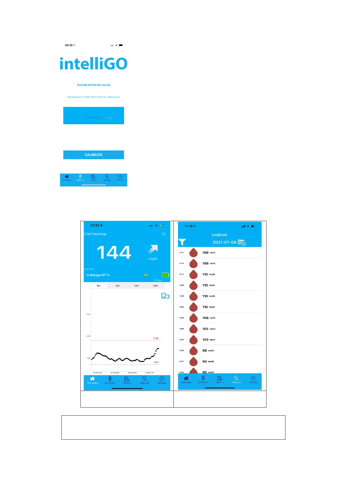 Blood glucose readings and trend curve are shown in App’s Home Screen.
