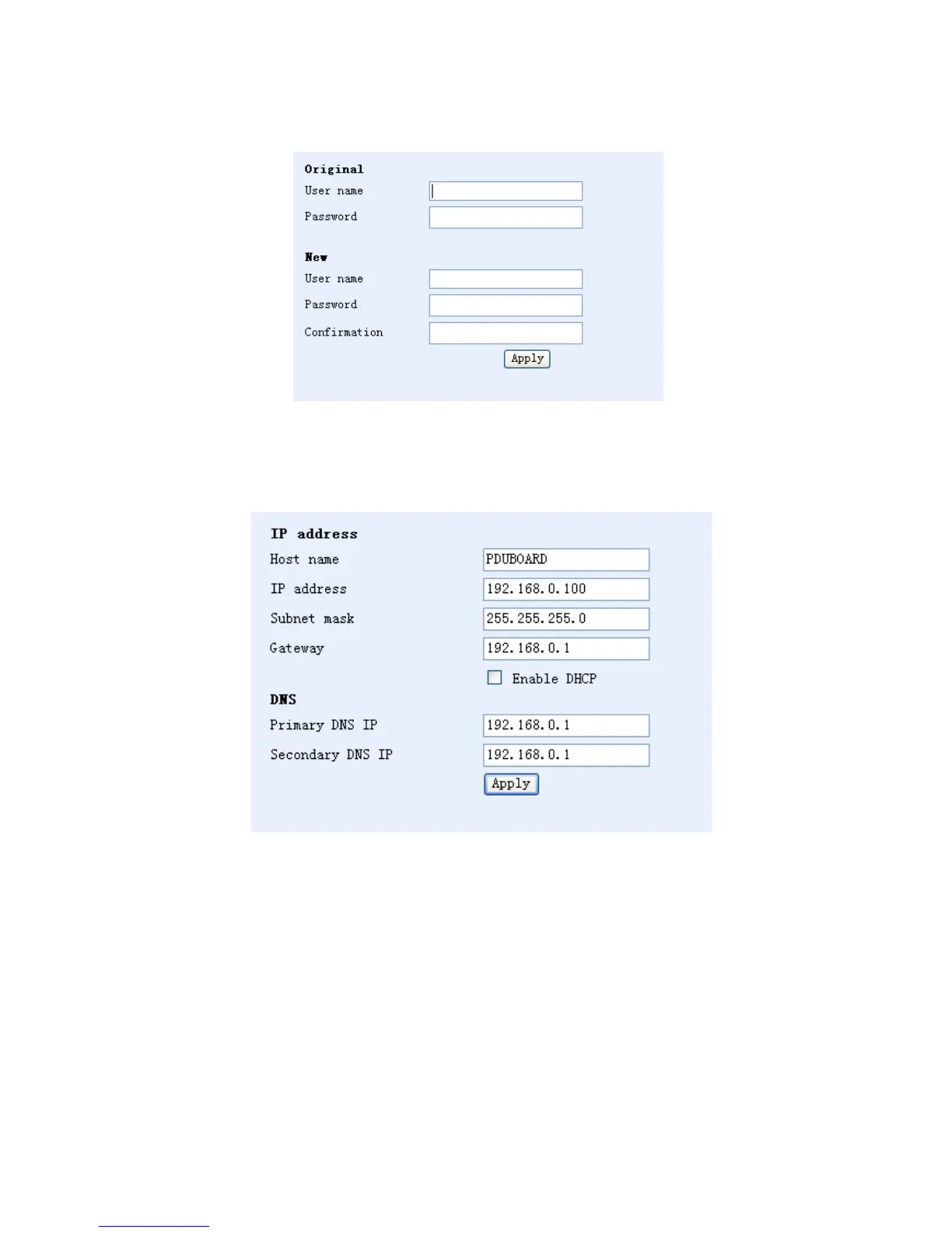 click the Apply button. The new user name and password will be used at the next login.