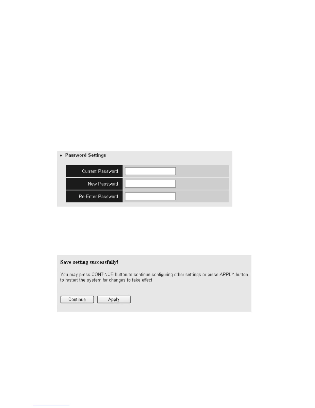 Password” fields. Click “Apply,” and the following message will be
