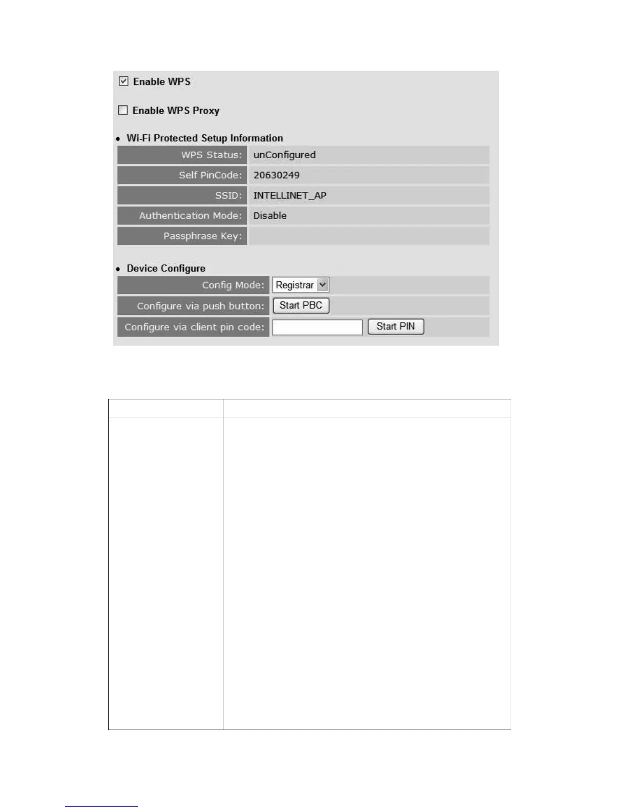 Self PinCode: This is the WPS PIN code of this