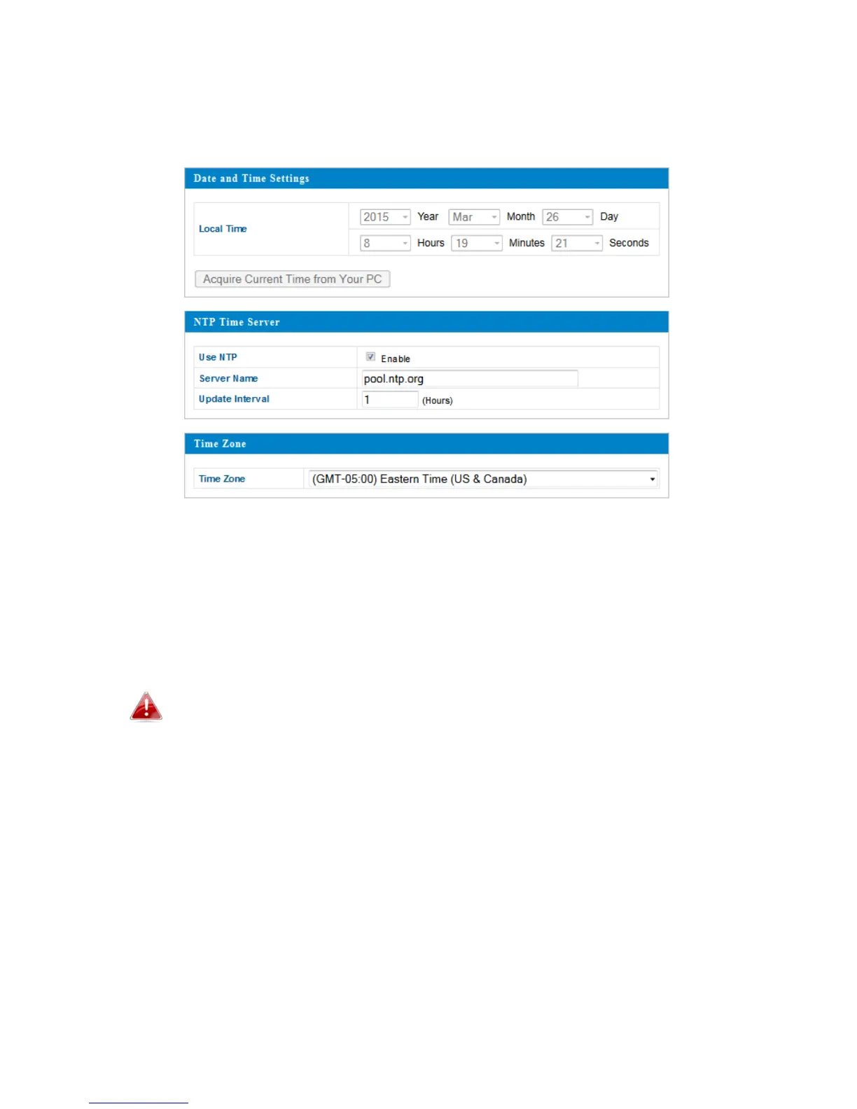 Youcanusethe“AcquireCurrentTimefromyourPC”buttonif