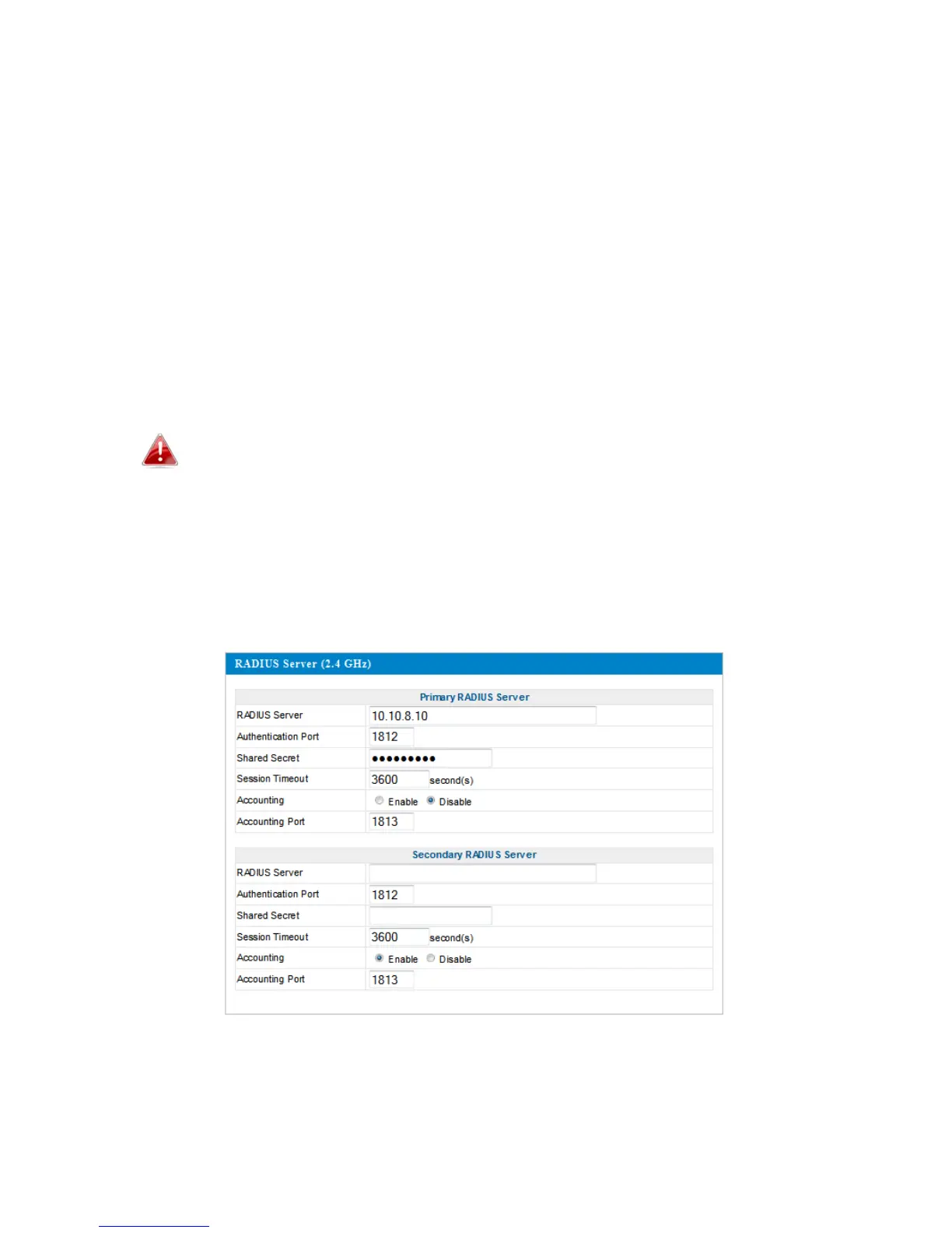 Theaccesspointcanutilizebothaprimaryandsecondary(backup)RADIUS