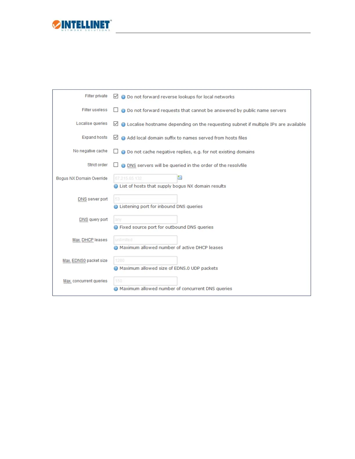 AvarietyofadvancedparametersconcerningDNSandDHCP.Undernormalcircumstancesthereisno