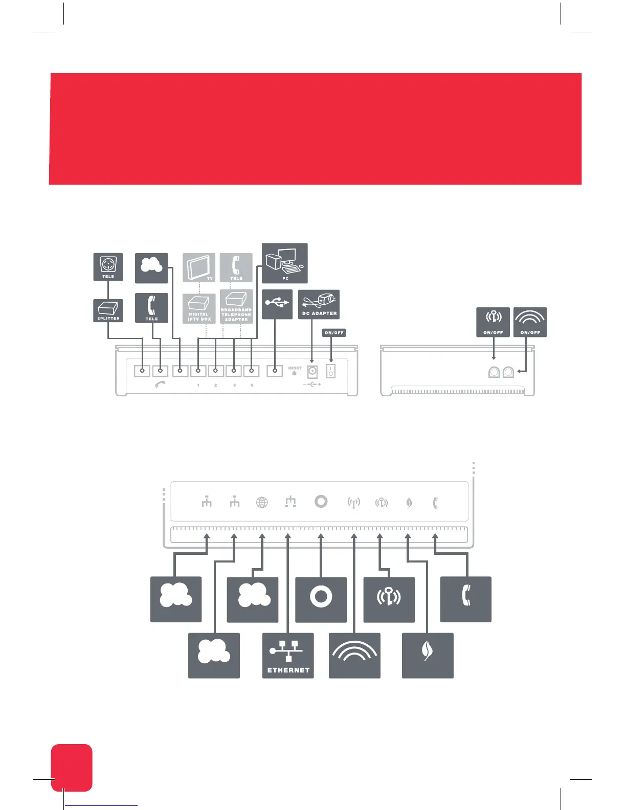 POWER WAN Ethernet WIFI TEL1 TEL2 Internet USB WPS