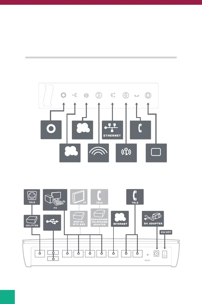 Inteno DG200 - Device Overview: Top Panel; Device Overview: Back Panel