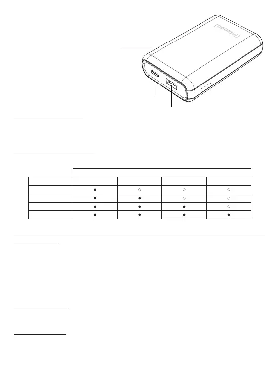 Os LEDs individuais mostram a energia restante do Powerbank: