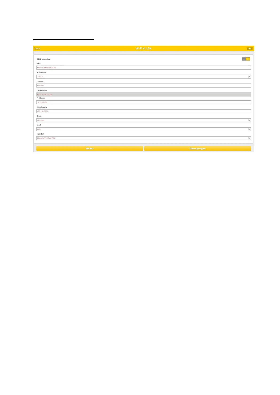 - SSID: Introduzca aquí el nombre de su red. El parámetro predeterminado en este caso es